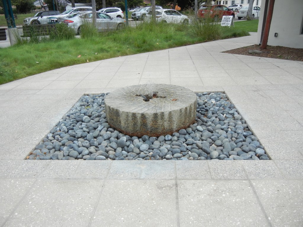 This well-used and “retired” grinding stone, first acquired by the City’s Parks Department, was given a second life as a burbling little fountain thanks to Carpinteria Beautiful. It’s located on the patio of Friends of the Library Bookstore.