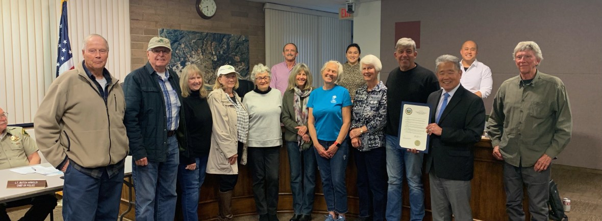 At the city council meeting on March 28, 2022, Carpinteria Beautiful was presented the Proclamation. Mayor Wade Nomura stands with fellow City Council members and the Carpinteria Beautiful proclamation recipients.